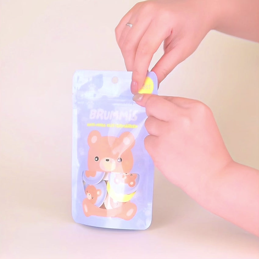 Om Brummis te gebruiken, druk je op de sticker totdat je een klik hoort. Daarmee activeer je de oliën. Bevestig daarna de sticker op de kleding van de kinderen of op voorwerpen in de buurt, zoals een kinderwagen, rugzak of tent. Elke sticker beschermt tot wel 12 uur.